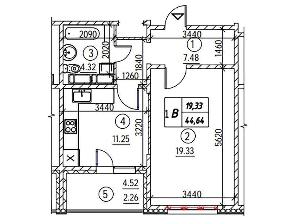 • Общая площадь 44.64 м2