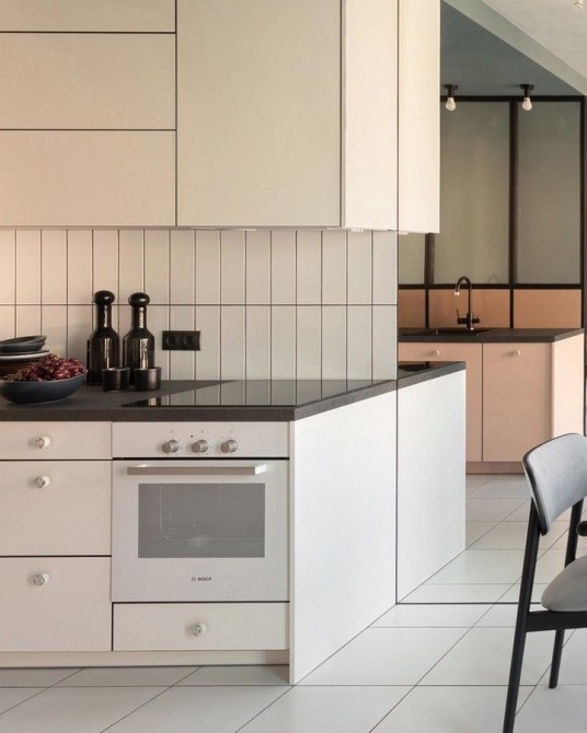 Сучасна кухня з матовими фасадами та темною стільницею