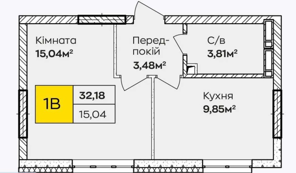 1-кімнатна квартира №237 — 32.18 м²
