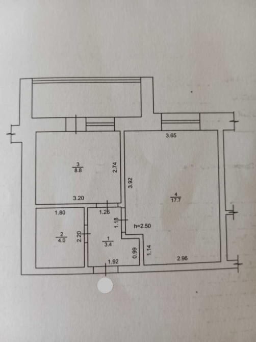 Квартира розташована на 4 поверсі 9-поверхового цегляного будинку. Загальна площа – 40 м², простора кухня – 9 м².