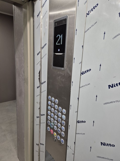 Ліфти працюють. Охрана сидить в підїзді.