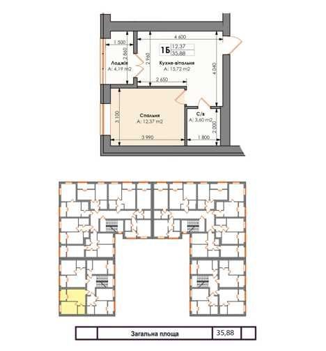 - загальна площа- 36.3 м2