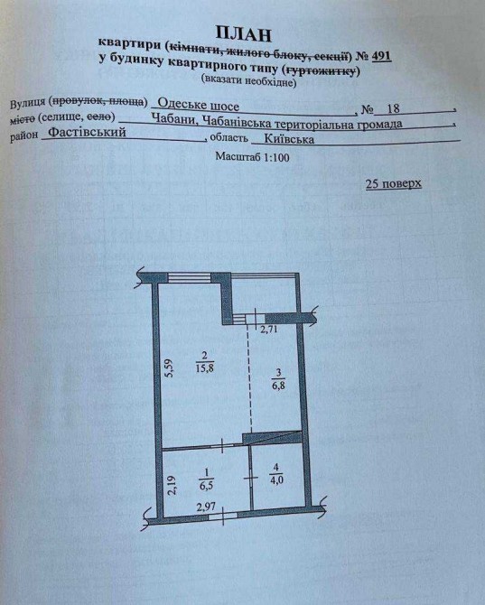 * Є розетки, всі сантехнічні виводи в кухні та санвузлі.