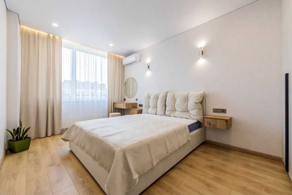 Квартира нова з сучасним та функціональним комплектуванням ( тепла підлога в санвузлі , коридорі та кухні, вбудований холодильник, посудомийна машина, варильна поверхня, духова шафа, витяжка, мікрохвильова піч, телевізор 55 Qled ,два кондиціонера ,бойлер) вся техніка нова та якісна.