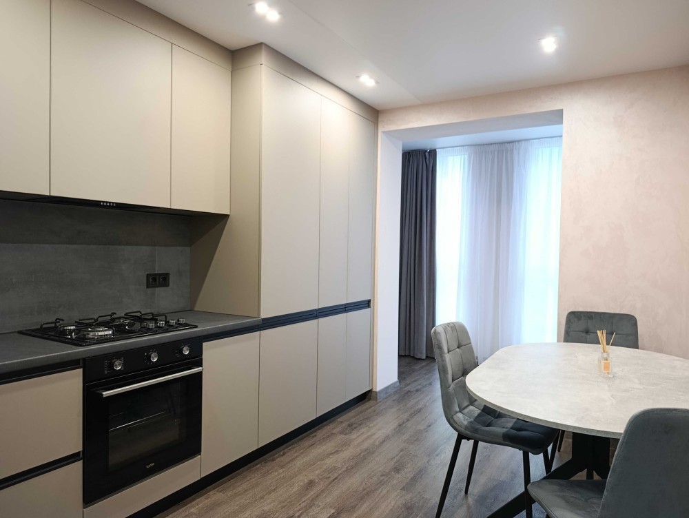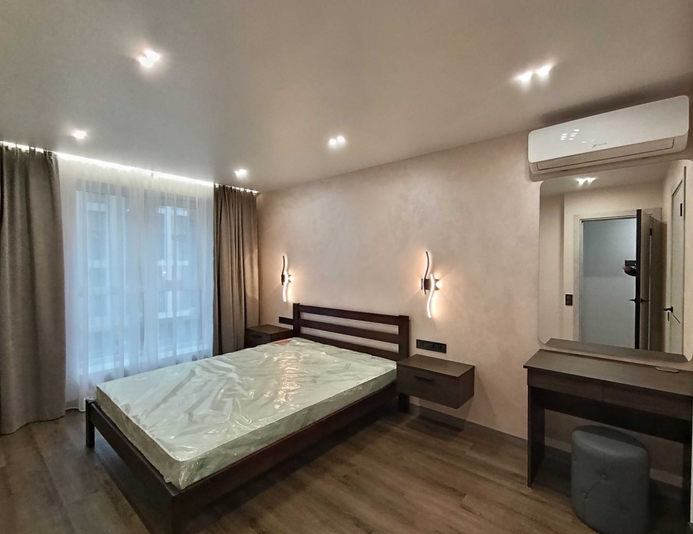 Якісний ремонт з дороговартісних матеріалів: стіни декоративна штукатурка, підлога - кварцвінілове покриття, всі меблі на доводчиках, тепла підлога по всій квартирі. Мідна проводка Hager. Вся техніка входить у вартість: кондиціонер, посудомийка, газова плита, духова шафа, холодильник, пральна машина, бойлер, телевізор.