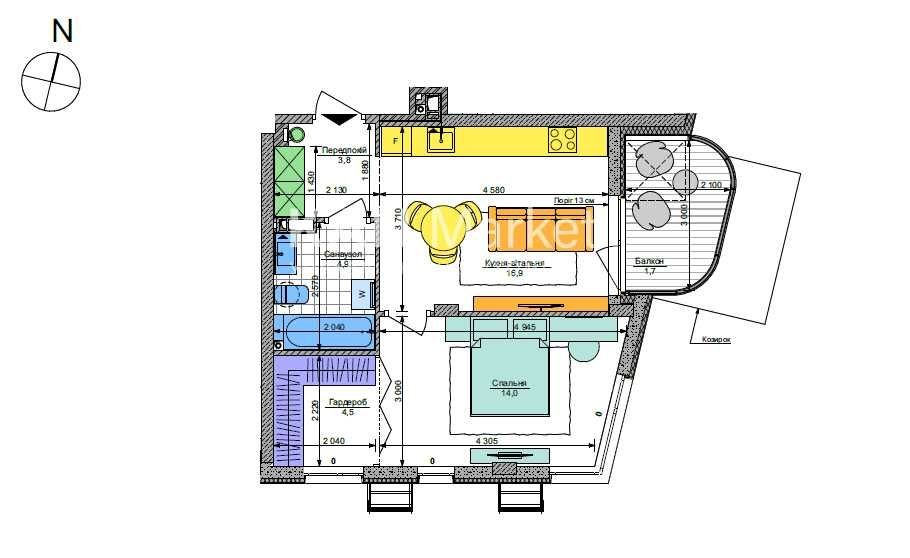 • Площадь кухни 16.9 м2