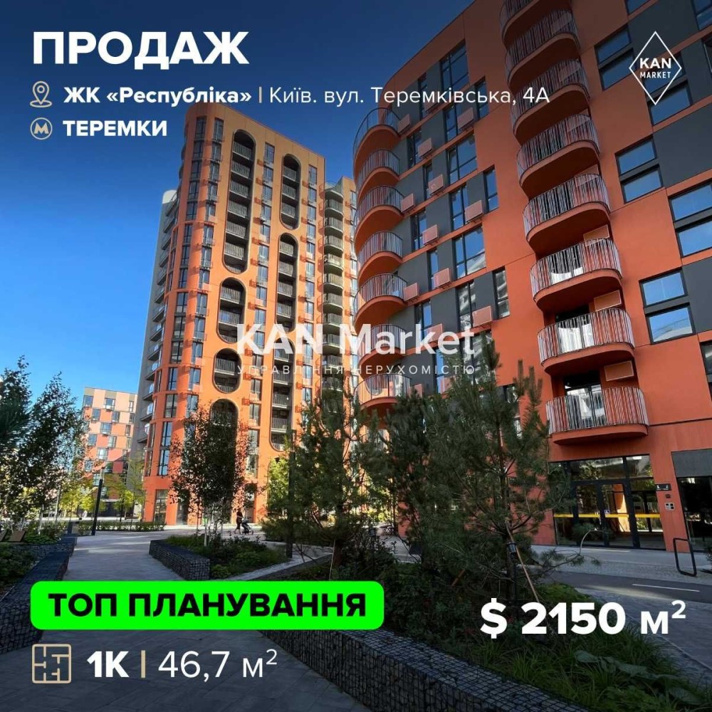 1к квартира з видом на променадну алею у ЖК Respublika!