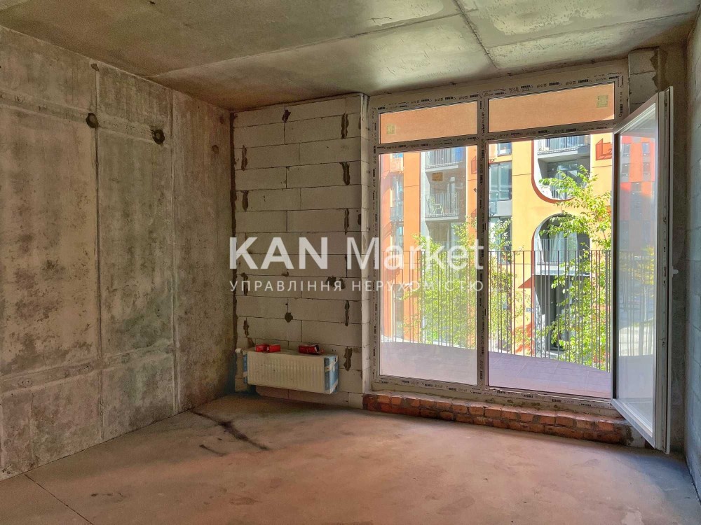 Вхідна зона починається зі зручного передпокою із місцем під велику шафу. Далі потрапляємо до кухні-вітальні, яка функціонально зонована: місце під велику робочу поверхню для приготування страв, а також місце для обідів з родиною або друзями. Величезні вікна дозволяють потоку денного світла заповнювати кожен куточок кімнати, створюючи атмосферу тепла та затишку. Продовженням простору тут є відкритий балкон. Уявіть, як зручно вийти на нього після сніданку, пити каву в оточенні природи, але в той же час бути всього в кількох кроках від центральної частини живого кварталу.