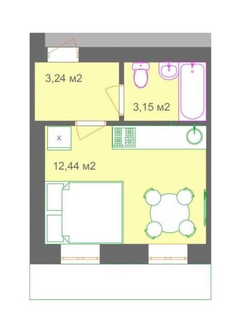 • Общая площадь 24 м2