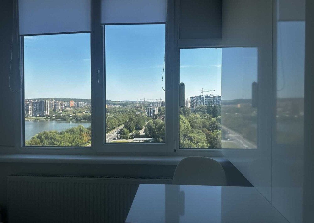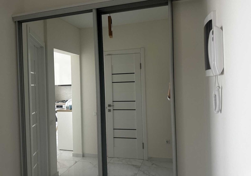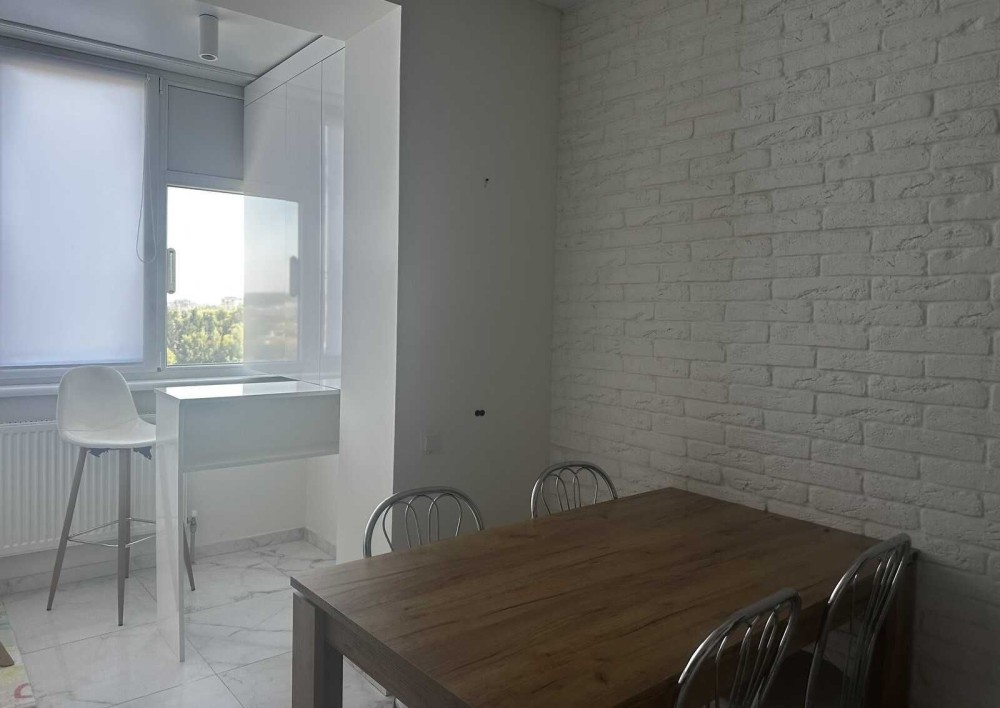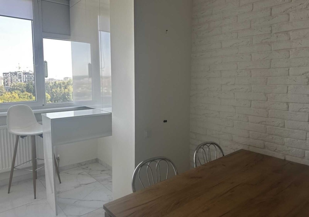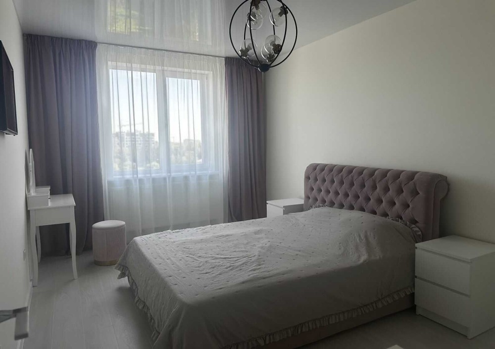 1к квартира в новобудові з хорошим сучасним ремонтом. Квартира наповнена меблями та технікою (залишається для нових власників), вдало розпланована (розділена на гардеробну та спальну зону ). Сучасний ремонт з дороговартісних матеріалів. Чудовий панорамний вид з вікна