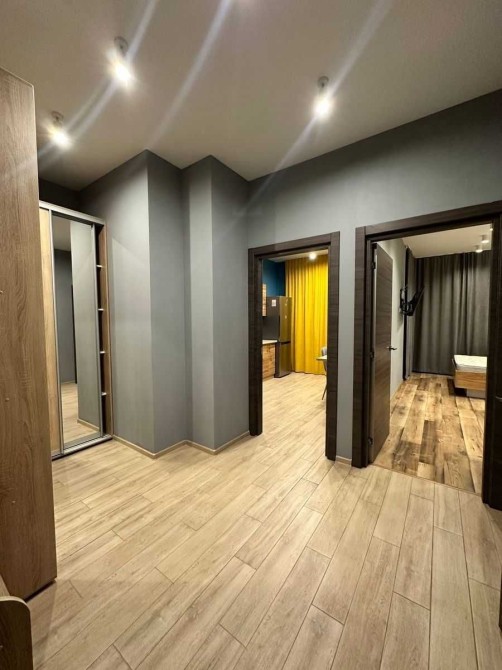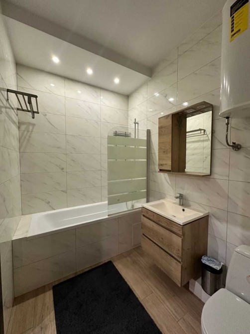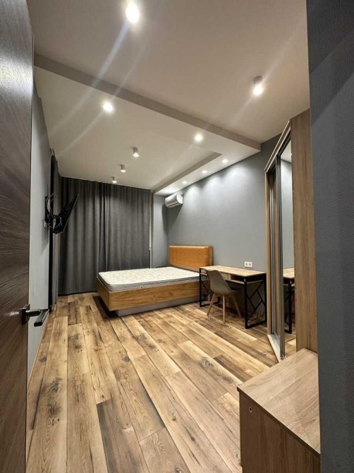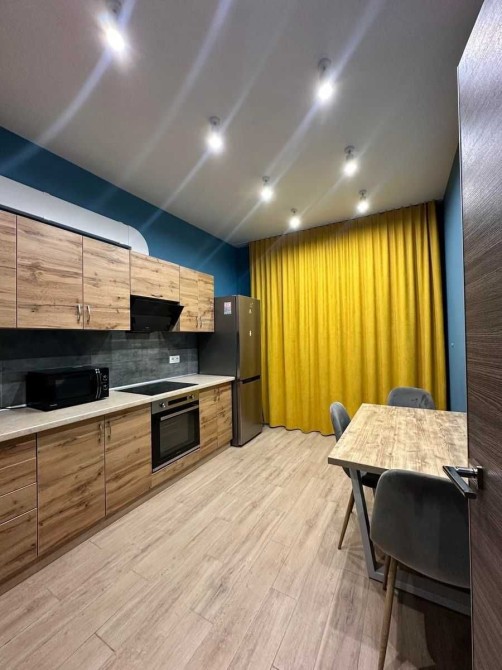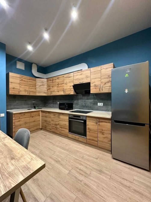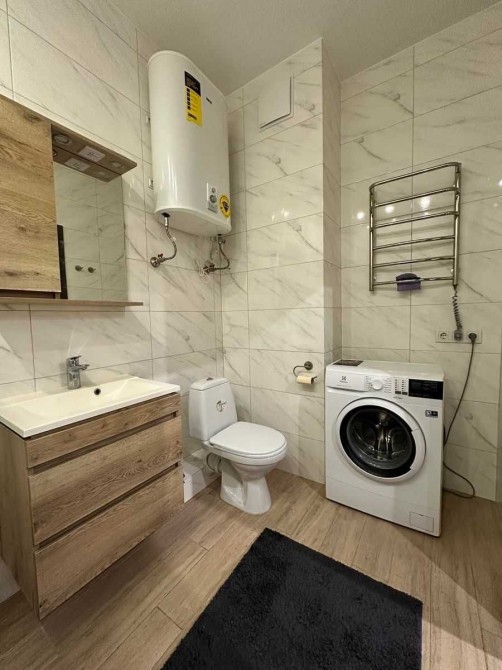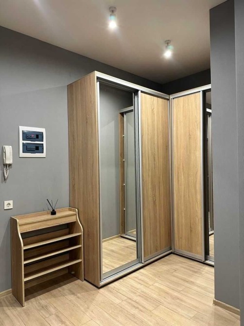 Укомплектована всією необхідною побутовою технікою та меблями. В доме охорона зі стійкой ресепшн. В квартиреі є бойлер, телевізор, електроплита, духовка, холодильник, витяжка, посудомийна машина, пральна машина, електрочайник, ліжко з ортопедичним матрасом, розкладний диван, шкаф, комод, Wi-Fi Інтернет, броньовані двері, домофон, кондиціонер, шафа в коридорі.