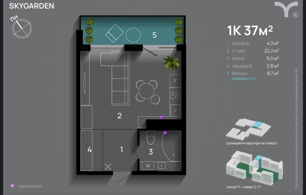 1к ЖК Skygarden 2 поверх ЦІНА 34900$ центр