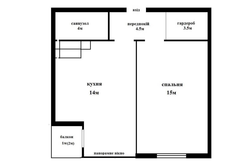 * має окрему спальню 15м та кухню 14м з виходом на відкритий балкон