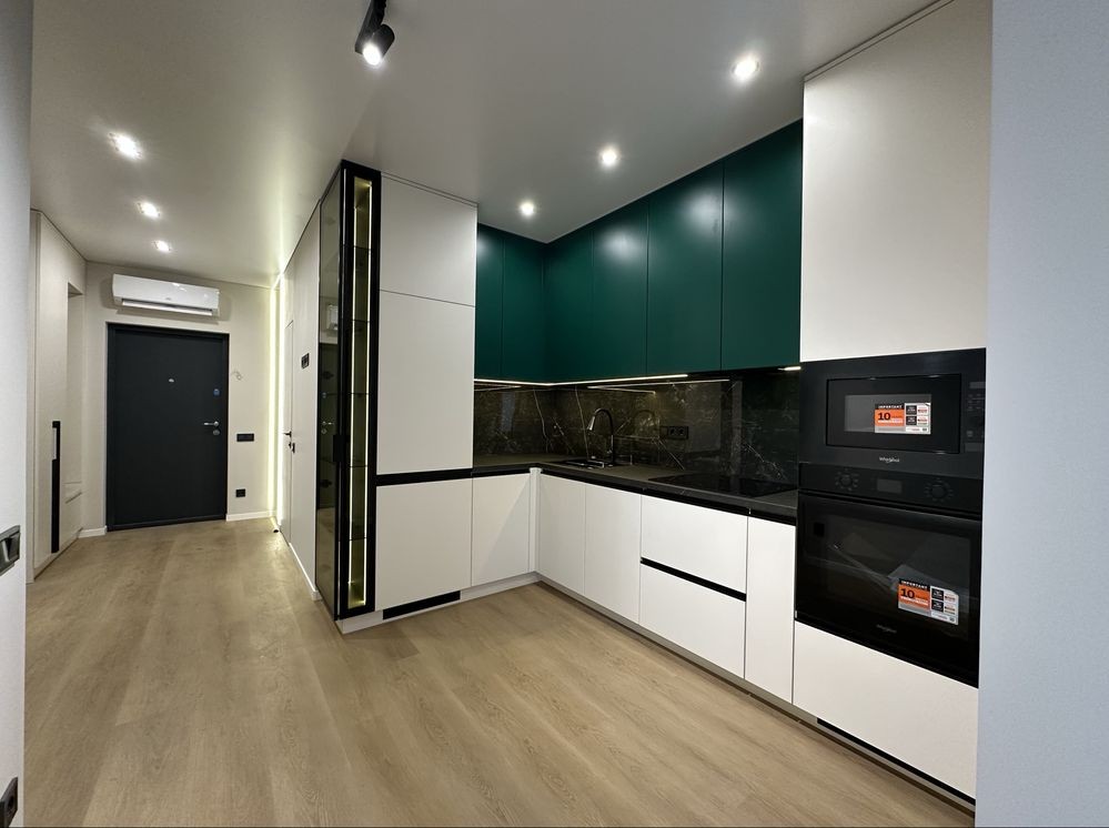 Кухня повністю укомплектована побутовою технікою Whirlpool, встановлена пральна машина та кондиціонер з функцією обігріву й охолодження.