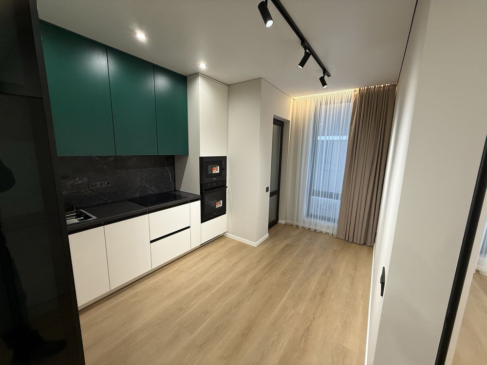 Продається сучасна 1-кімнатна квартира з якісним дизайнерським ремонтом у престижному ЖК «Манхеттен», поруч із міським озером.