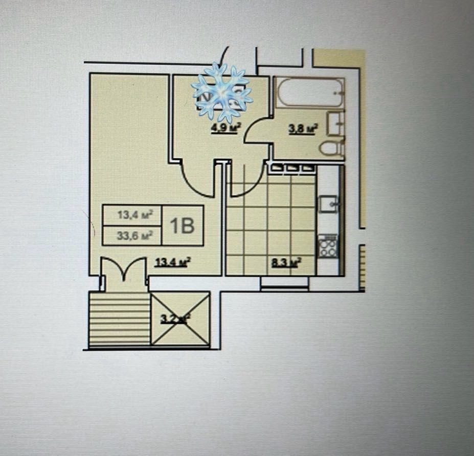 • Площадь кухни 8.3 м2