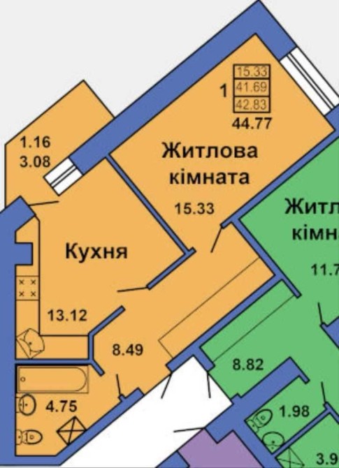 1-кімнатна квартира від забудовника Полтаватрансбуд – 42 м², по Кільцю, зупинка «Бібліотека» – всього $36,000!