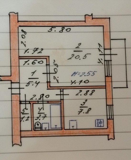 • Площадь кухни 7.8 м2