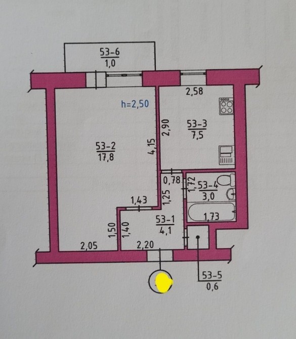 • Общая площадь 35 м2