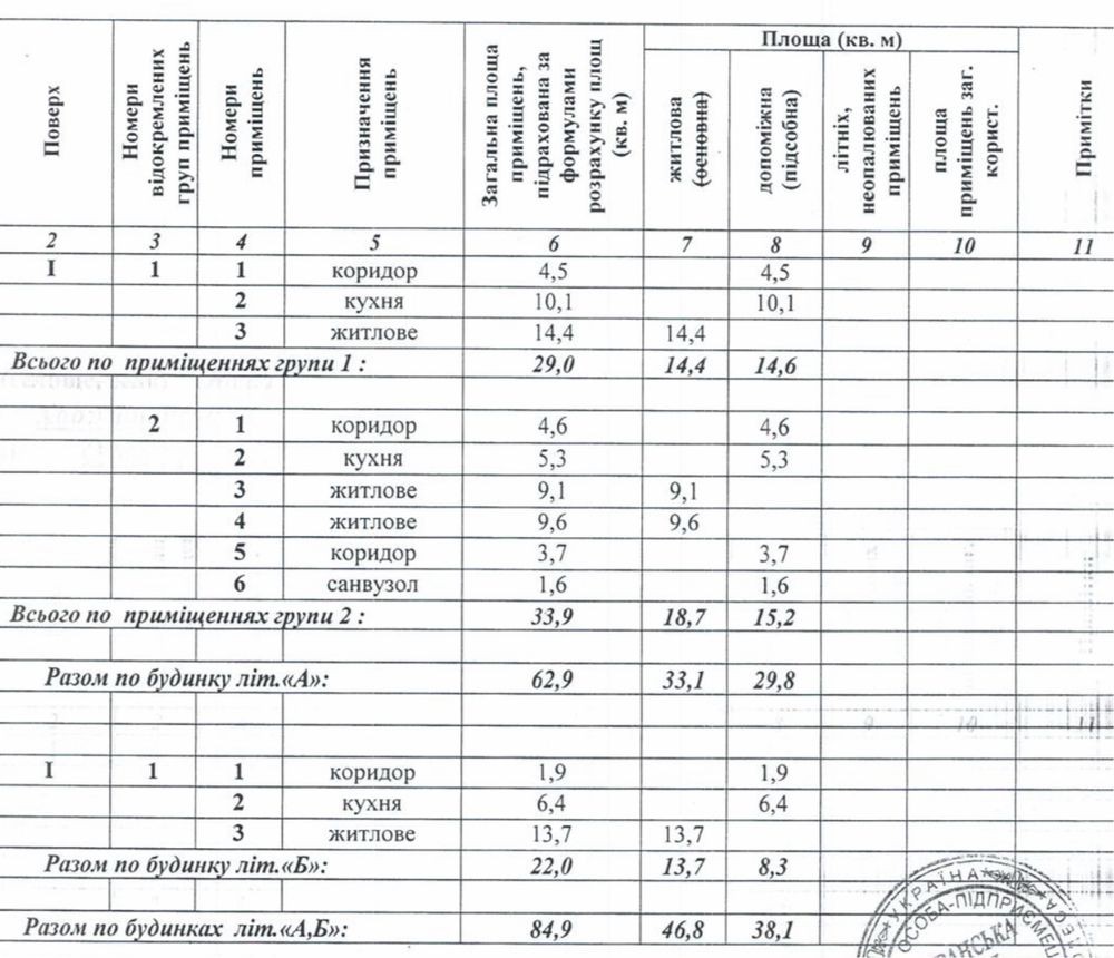 Загальна площа 84,9 кв.м. (62,9 + 22)