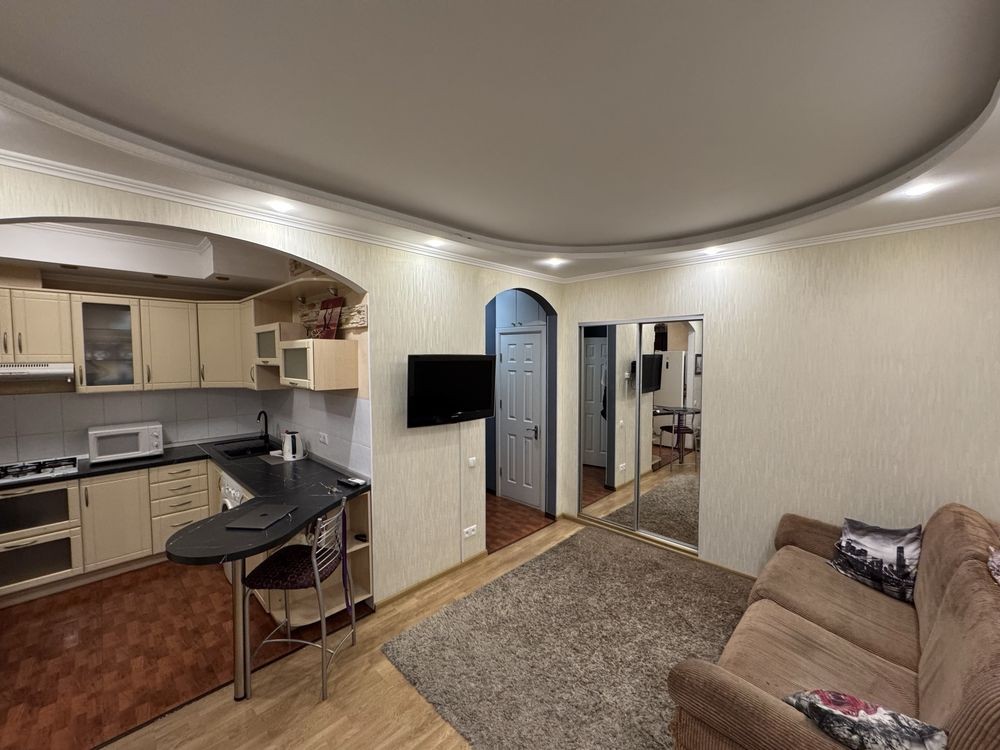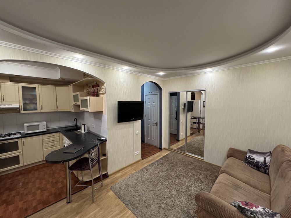 Квартира в ідеальному житловому стані, кухня студіо, санвузол роздільний, душова кабіна, балкон новий з металопластиковими вікнами, в кімнаті є вбудована шафа купе. Квартира продається з меблями та технікою. Площа квартири – 40м2. знаходиться на 6 поверсі 9 поверхового цегляного спецпроекту. Висота стелі 2,75 м². Квартира не кутова , знаходиться в середині будинку, всі вікна виходять у двір. Ліфт, кодовий замок. Просторий зелений двір, багато місця для паркування авто, шлагбаум.