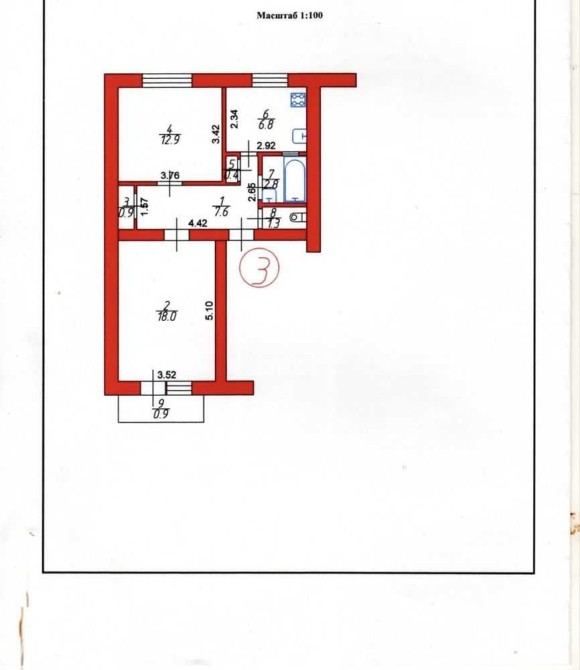 Дві окремі кімнати 18,0 м² та 12,9 м², кухня 6,8 м², санвузол роздільний, балкон. Є дві кладовки.
