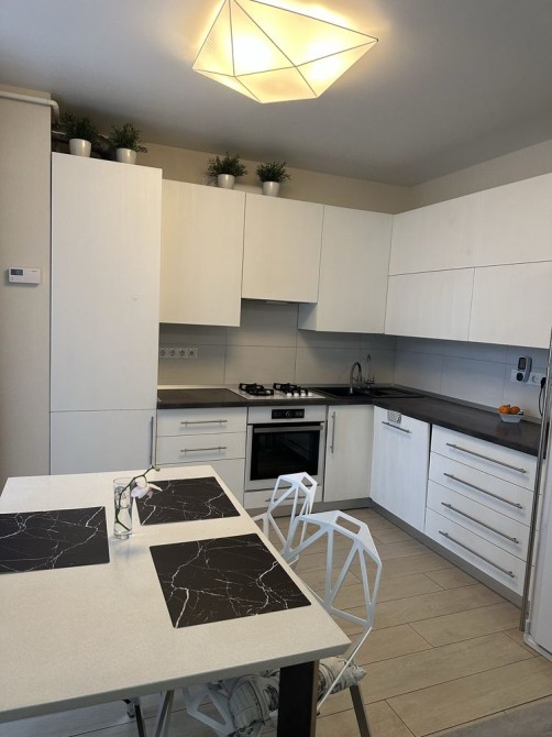 Простора 2- к квартира в елітному комплексі з охороняємою теріторією, 3 поверх, перша здача, без комісії. Велика кухня- вітальня, дитяча кімната, простора спальня обладнані необхідними меблями та технікою. Індивідуальне опалення, зарядна станція, посудомийна та пральна машина, кондиціонер.