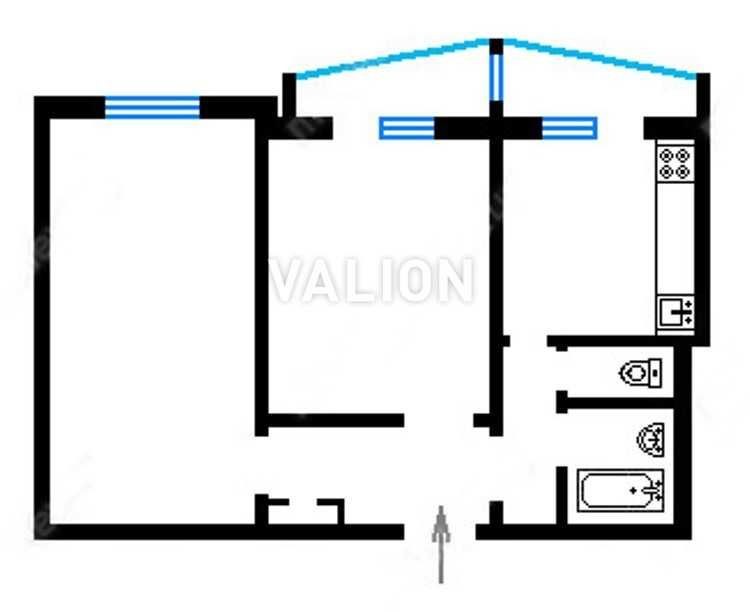 Кімнати окремі, санвузол роздільний. Кухня та кімната мають вихід на просторий балкон.