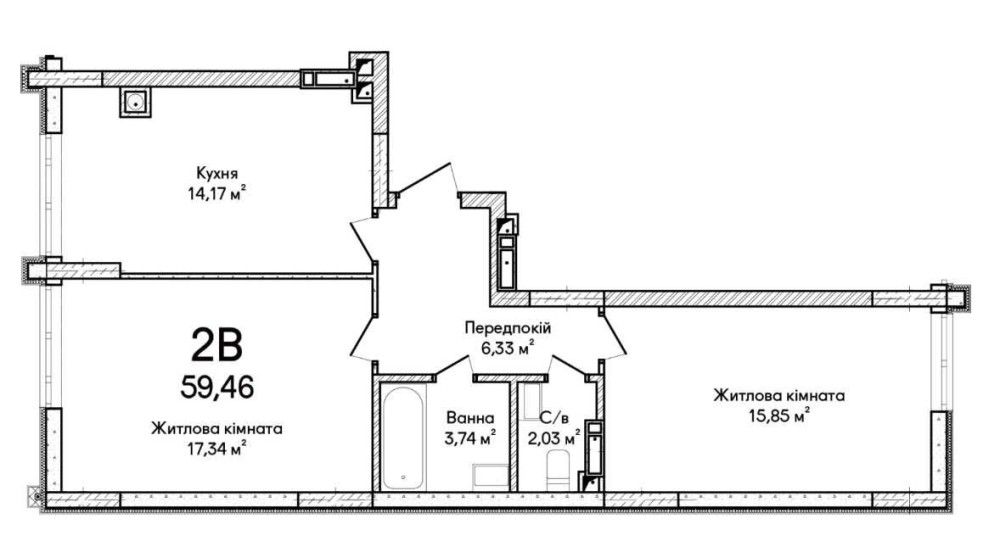 • Общая площадь 59 м2