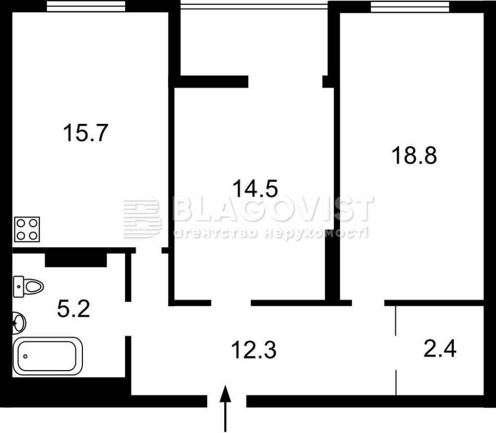 • Площадь кухни 15.7 м2