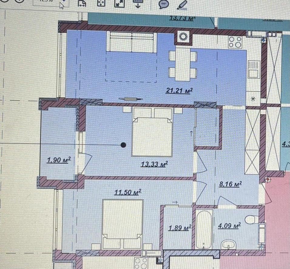 • Площадь кухни 21.21 м2