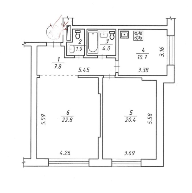 • Площадь кухни 10.7 м2