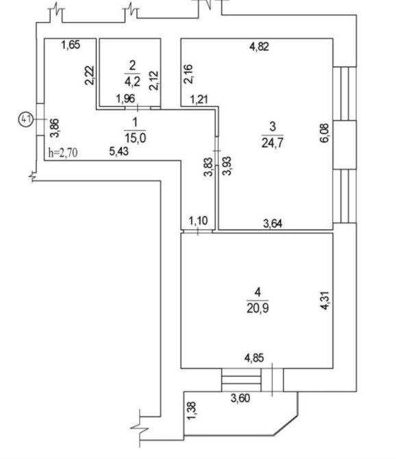 - Висота стелі - 2,7м