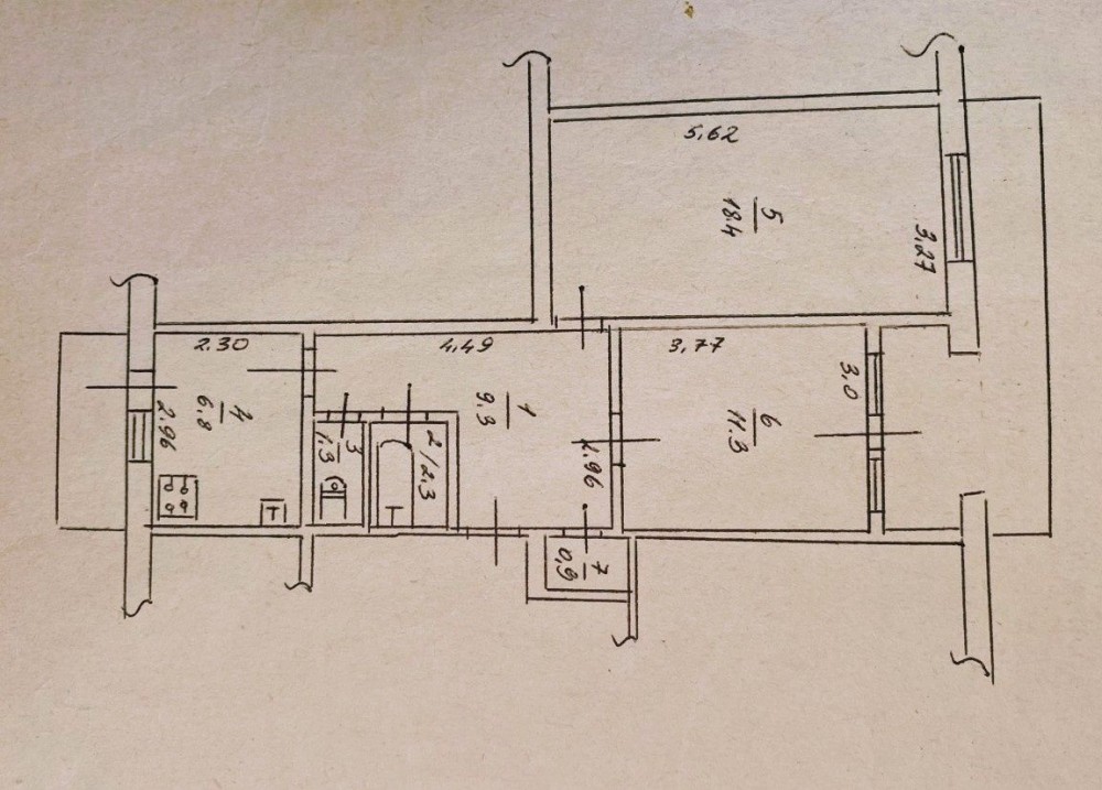 • Площадь кухни 7 м2