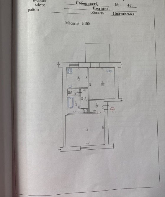 • Площадь кухни 6.6 м2
