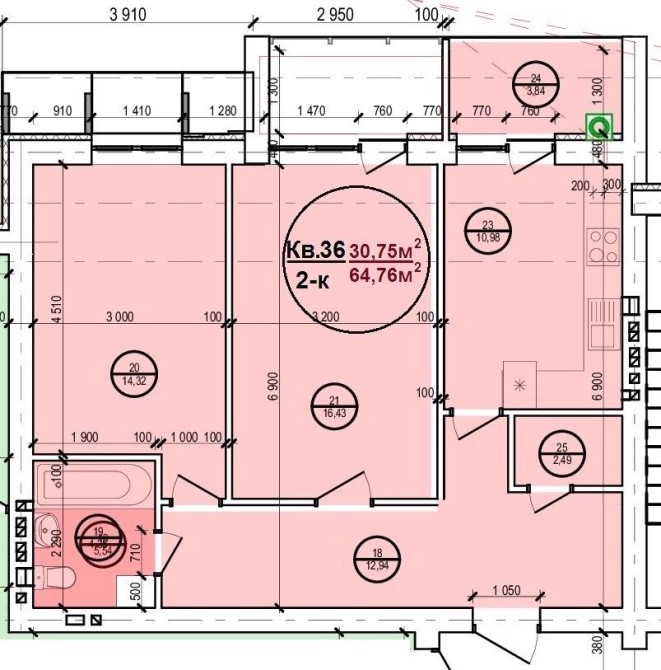 • Общая площадь 64.76 м2
