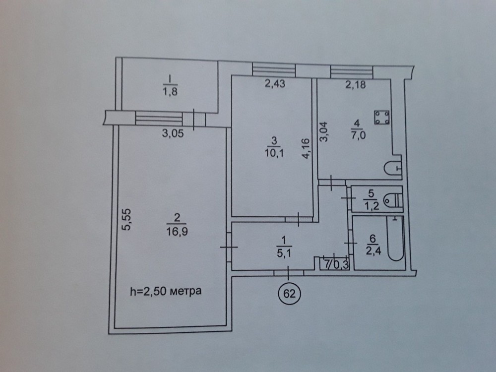 • Площадь кухни 7 м2