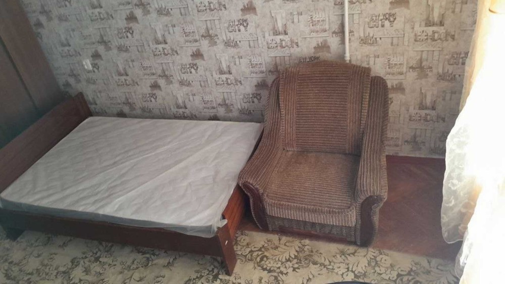 3 ліжка, 2 шафи, великий телевізор, кондиціонер, письмовий угловий стіл, килими, праска, 2 зручних офісних крісла. В квартирі є балкон на дві кімнати.