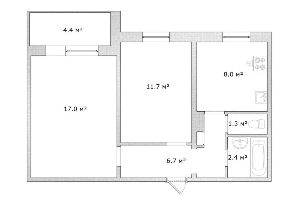 - площа квартири - 50 м2
