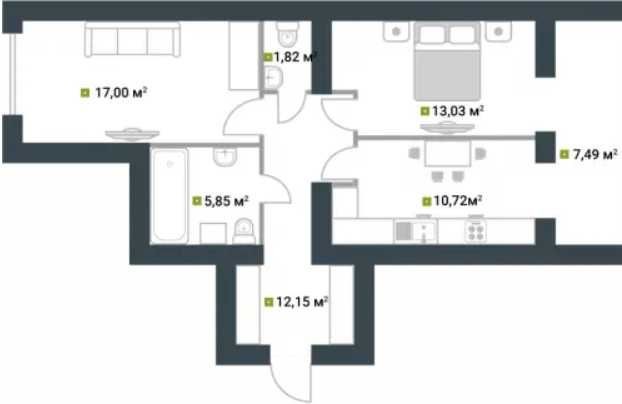 • Общая площадь 60 м2