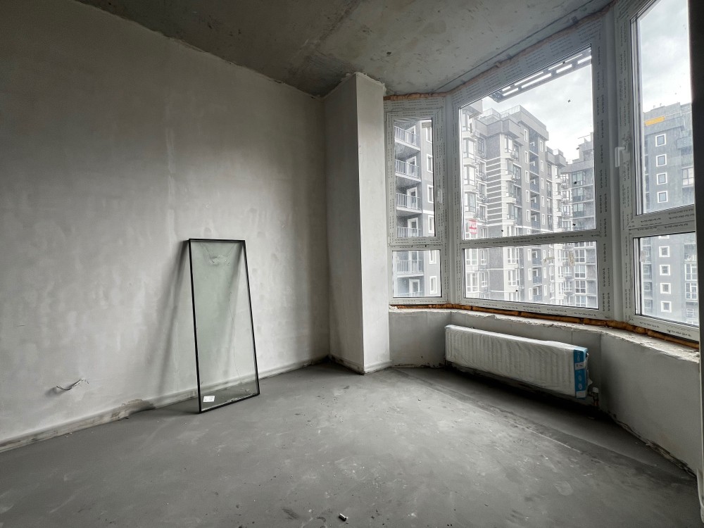 Квартира на 11-му поверсі, двостороння, готова під фінішний ремонт, з чудовим виглядом на фонтан у двір комплекса.