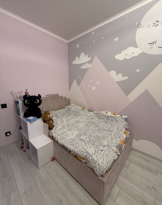 Здається в оренду квартира, яка має дві окремі спальні, простору кухню-вітальню, санвузол з ванною та окреме підсобне приміщення для побутових речей і пральної машини.