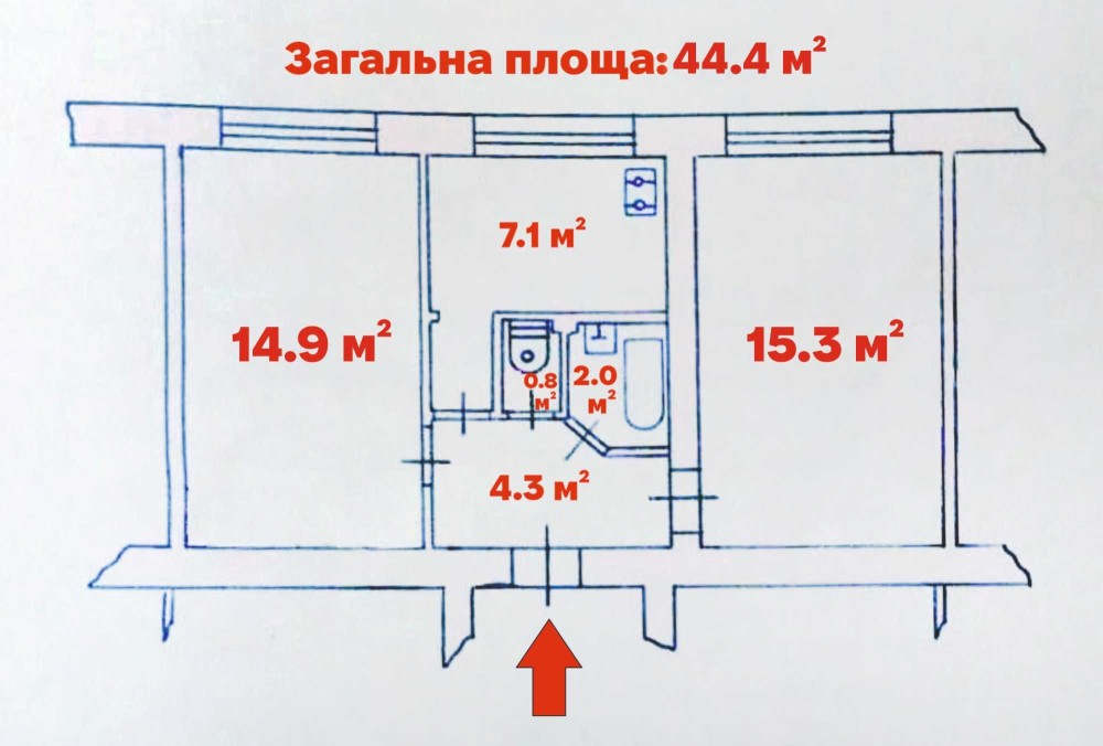 • Общая площадь 44.4 м2