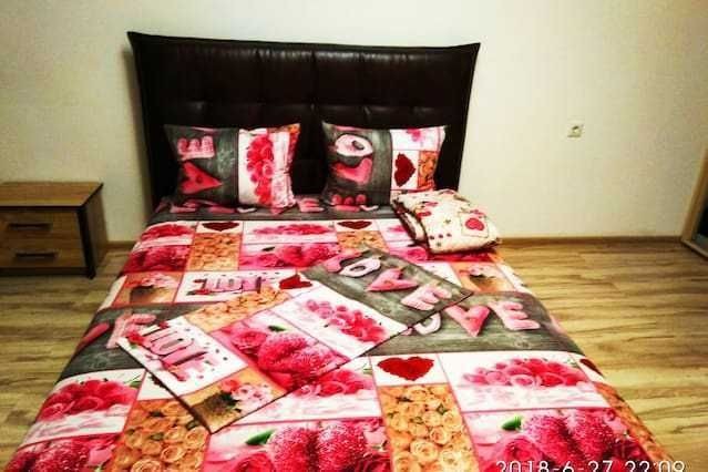 У спальні велике двоспальне ліжко, а в кухні-вітальні два розкладні дивани, плазмовий TV цифрове телебачення. Кухня з необхідною побутовою технікою, електроплита та духовка, холодильник, обідній стіл зі стільцями, праска з дошкою для прасування, весь необхідний посуд, wi fi інтернет. У ванній кімнаті - ванна.