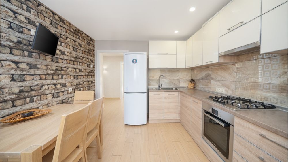 Стильний ремонт у світлих кольорах виглядяє свіжо і трендово, наче додаючи простору і відчуття повітря квартирі. Бельгійські шпалери, колекційні світильники, іспанський керамограніт, якісні двері та ще багато елементів, які і створюють тут неповторну атмосферу затишного гніздечка, куди хочеться повертатися знову і знову.