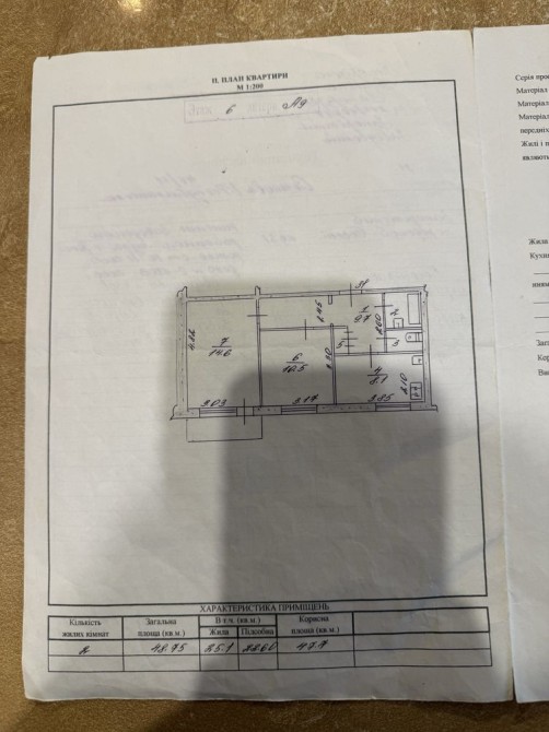 Загальна площа — 48,75 м², майже 49 квадратів. Кухня — 8 м².