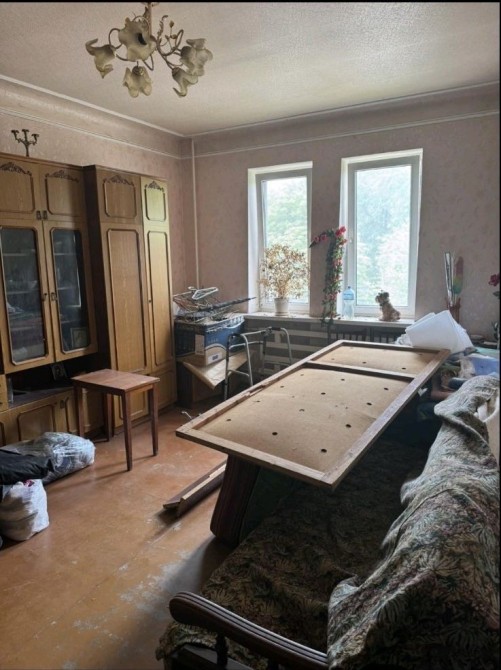 Квартира з старим ремонтом, потребує оновлення, але має зручне планування та світлі кімнати.