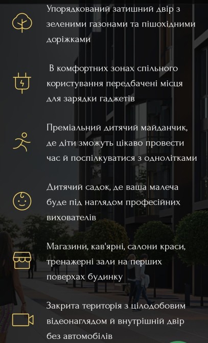 Житловий комплекс преміум рівня з закритою територією, підземним паркінгом, дитячим майданчиком та бомбосховищем.
