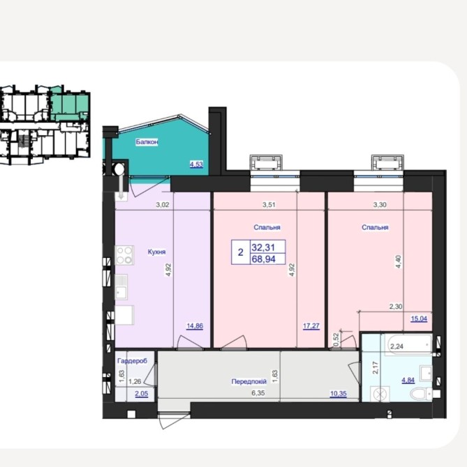 Загальна площа - 69 кв.м