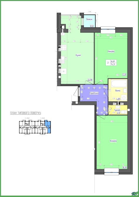 • Общая площадь 74.31 м2